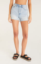 It’s always denim season! The Everyday Hi Rise Denim Short is made using our new 100% cotton fabrication, with a heavy soft wash for that added worn-in softness. Fitted at the waist, but relaxed through the thigh, this short features a longer inseam and has rivet details. We love it with a flowy top or any essential tee. Fabric Content: 100% Cotton