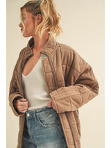 Introducing the perfect quilted washed oversized Dixie jacket features a thoughtfully crafted design that strikes the ideal balance between fashion-forward and comfort. The oversized silhouette exudes a relaxed and laid-back vibe while the dolman sleeves add a touch of sophistication and uniqueness. The material is made from high-quality 100% cotton fabric that is pleasant to the touch and surely to to turn heads wherever you go.