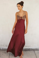 Lace And Satin Contrast Maxi Dress