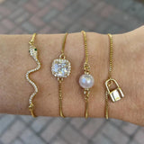 Keep it simple and charming with this adorable crystal gem slider bracelet. A little bit of bling goes a long way with this cutie! These gold adjustable bracelets will put tighter or looser to fit any size wrist. 14k gold plated over copper