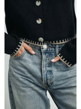 Stitch Crewneck Cardigan Sweater
