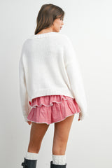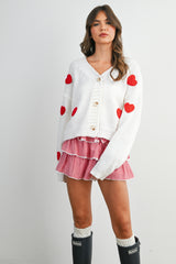 Add a touch of charm to your look with this Heart Pattern V-Neck Cropped Cardigan Top.