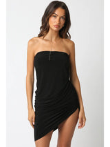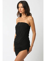 Our Alissa Mini Dress features a strapless bodycon fit with ruched detailing and an asymmetrical hemline. Woven