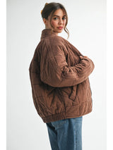 Introducing the perfect quilted washed oversized Dixie jacket features a thoughtfully crafted design that strikes the ideal balance between fashion-forward and comfort. The oversized silhouette exudes a relaxed and laid-back vibe while the dolman sleeves add a touch of sophistication and uniqueness. The material is made from high-quality 100% cotton fabric that is pleasant to the touch and surely to to turn heads wherever you go.