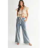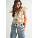 This elegant lace-trimmed blouse combines delicate embroidery with soft, breathable fabric to keep you looking stylish and feeling comfortable. The intricate lace details create a sophisticated appearance, perfect for enhancing your wardrobe. The tie-front design adds a feminine touch, making it suitable for both casual and more polished occasions. Model is wearing a size S Model : 5'9" - B 32" - W 24" - H 35"